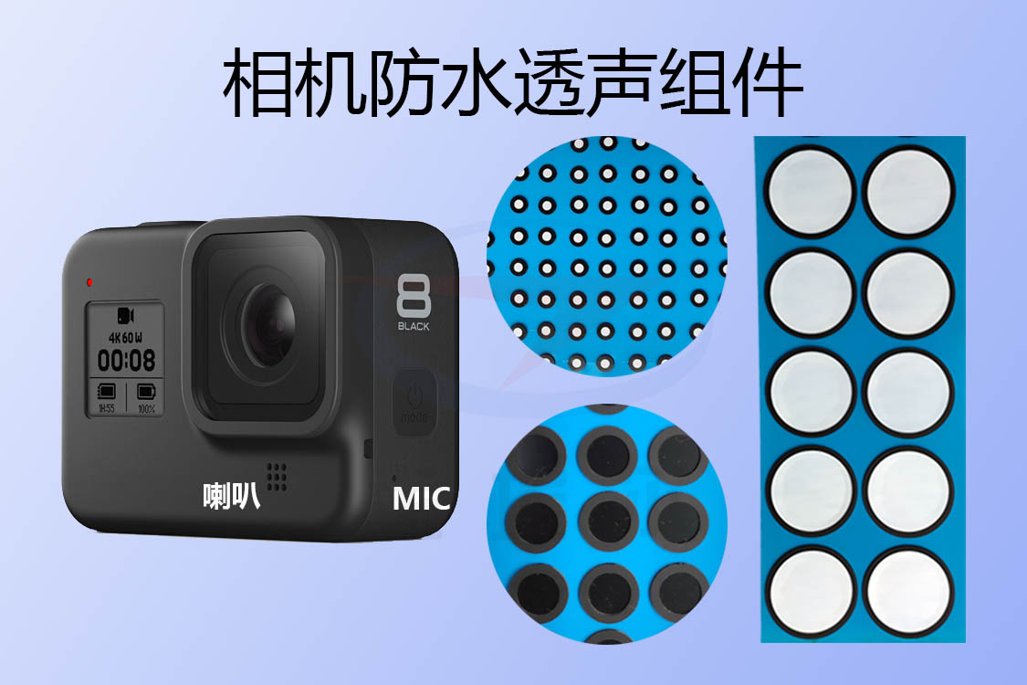 隨著現在相機的普及與平民化,更是因為使用場合分化出了多種類型相機,比如說戶外運動相機可以記錄人們在運動中的精彩畫面。是可以被廣泛地用于各種運動場合精彩畫面或者過程的記錄,如滑雪,騎行,射擊訓練,潛水,打獵等等。那么在記錄完成后回放確定記錄的視頻聲音,以及在攝像時聲音的收集,分別是是通過殼體內的喇叭或者說揚聲器與MIC咪頭來實現的,因此就要在這些電聲器件的殼體對應位置開孔來實現聲音傳輸。因此薄弱環節在于這些透聲孔的防水處理,一般是通過相機防水透聲組件來實現的,那么這個相機防水透聲組件是怎么實現透聲孔的防水與透聲的呢?