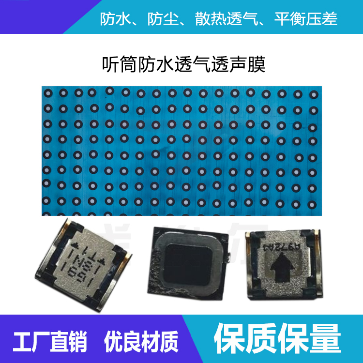 對于揚聲器透聲孔位的防水處理,多數(shù)是采用防水網+防水揚聲器+點膠來實現(xiàn)防水的,防水網可以將一些灰塵等阻隔在膜外,防水揚聲器就保證了不會有水進入揚聲器內部,點膠是為了將揚聲器邊緣封膠,避免有水從喇叭揚聲器與殼體之間的縫隙進入電子產品內部;也有一些是采用揚聲器防水透音膜+揚聲器+點膠來實現(xiàn)防水透音的,防水電子產品揚聲器防水透音膜材料是有很好的防塵防水性能的,可以將水阻隔在外部,硅膠點膠同樣是為了避免有水通過揚聲器和殼體間縫隙進入內部,這種電子產品揚聲器防水透音膜在防水的同時也具有很好的透音透聲性能的,這樣的防水透音膜根據實際應用有對講機防水透音膜、智能電器防水透音膜、智能機器人防水透音膜等等電子類產品揚聲器透聲孔的防水。