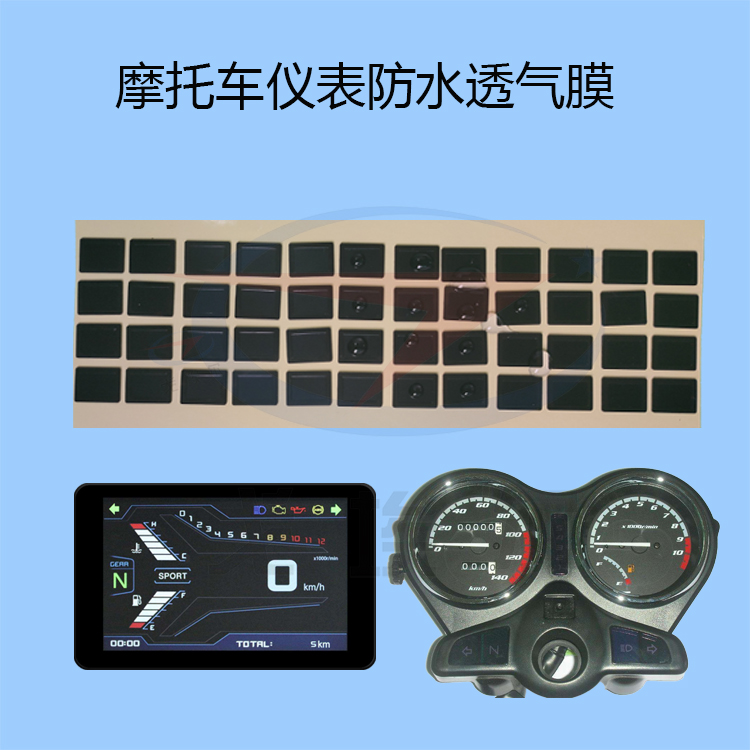 所以儀表盤防水是非常重要的。戈埃爾科技生產的防水透氣膜就很好地解決了這個問題。具有很好的防水防塵效果,防護等級比較高。防止雨水進入摩托車儀表內部,一般固定在儀表盤防水罩的上下兩側和接縫處。有效的防潮腐蝕、降溫散熱、而且泄壓排氣、具有壓力平衡等性能。這樣就能很好地保護電子元器件。也保障了騎手的生命安全。