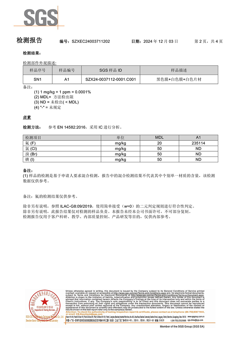 黑色防水透聲膜/白色防水透氣默默/白色透氣貼SGS檢測報(bào)告